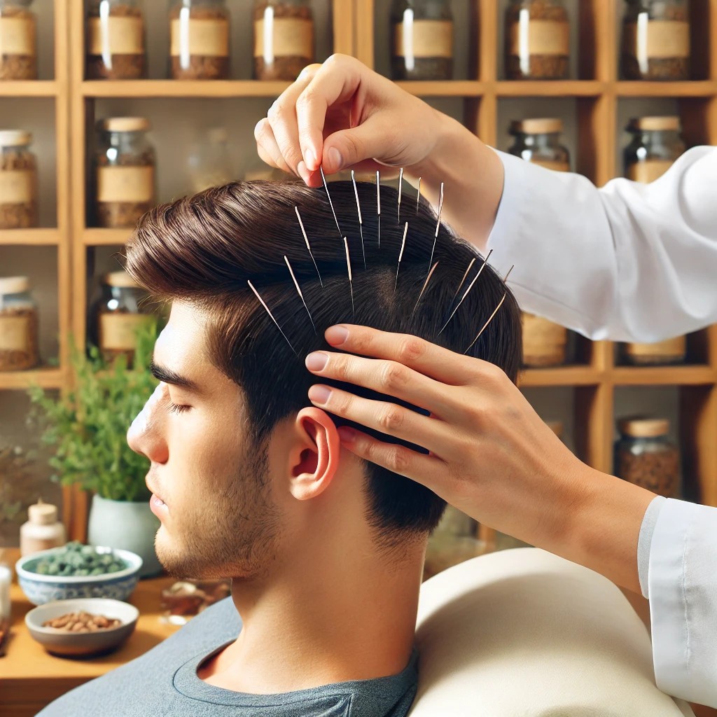 중의학에서는 특정 혈자리를 자극하는 침구요법을 통해 탈모를 치료할 수 있습니다. 침구요법은 기혈 순환을 개선하고, 두피와 모근에 영양을 공급하는 역할을 합니다.